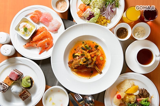 金穗坊以 SEMI BUFFET 的方式供應時令半自助餐及主菜美食,包括從西式及中式風味的各種冷盤開味菜、熱食、新鮮繽紛的沙拉吧和各色誘人的甜點。