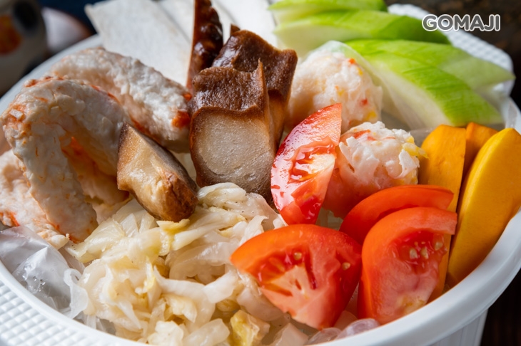 吃素的朋友,店家精心製作的純素酸白菜鍋,同樣能讓您品味到酸菜白肉鍋無敵的美味唷!使用私房獨門的酸白菜,佐入凍豆腐、素貢丸、素蝦仁、寬冬粉、秀珍菇、木耳、玉米、香菇、杏鮑菇…等豐富佐料,細細燉成一鍋沒有鮮肉,味道更為醇厚、天然的素酸白菜鍋,細細品味,酸菜獨到的酸氣與鮮蔬自然的甘甜交織一塊,彼此烘托出更好的滋味,讓人齒頰留香,回味無窮!