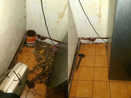 因為擔心居家生活環境的髒亂,會影響老爺爺的身體健康,社工安排第一次大掃除,專業的清潔阿姨才進門就飛奔而出,難以想像在小小套房的空間中,竟然累積這麼多垃圾!老鼠的糞便與屍體會帶來的異味與細菌,更是無法想像失明的長輩如何在這樣的環境裡生活。