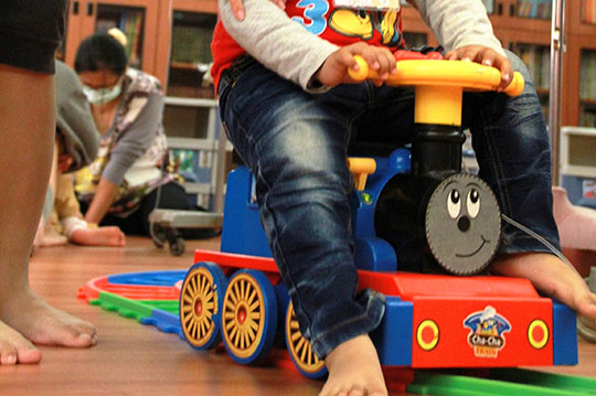 ➯ 透過玩具車裝載所有設備、玩具遊戲資源、志工團隊進入兒童病房,辦理遊戲陪伴服務。依照兒童行動力較弱、使用輪椅行動不便的需求,提供適合的玩具遊戲資源。