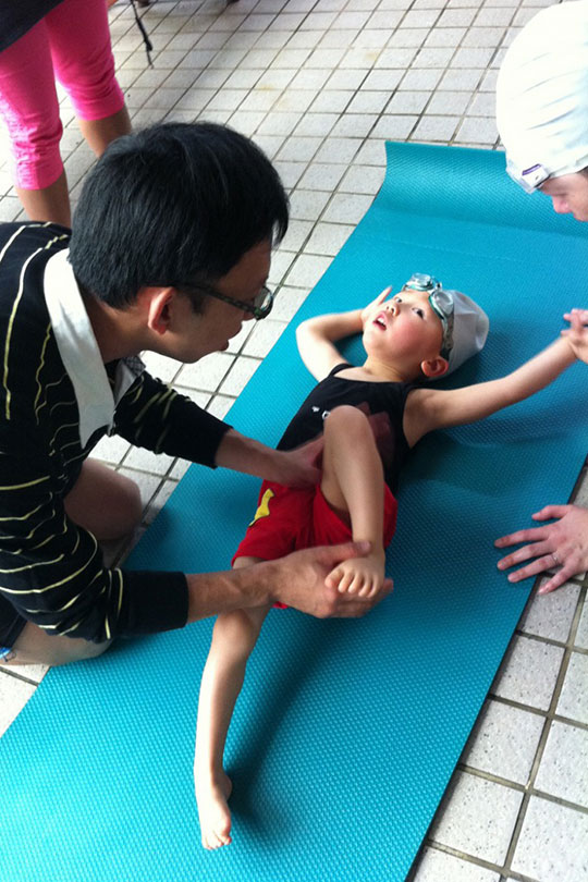 偶然機會,小程接觸水中運動訓練,藉由水的浮力順利完成向前爬行的動作,因為運動量的提升,也讓小程的精神體力變得更好!更進一步嘗試水中閉氣、水中吹泡泡、水中行走等訓練。爸爸媽媽驚訝地看到小程的改變,滿懷欣慰與感謝,期待著小程持續進步!