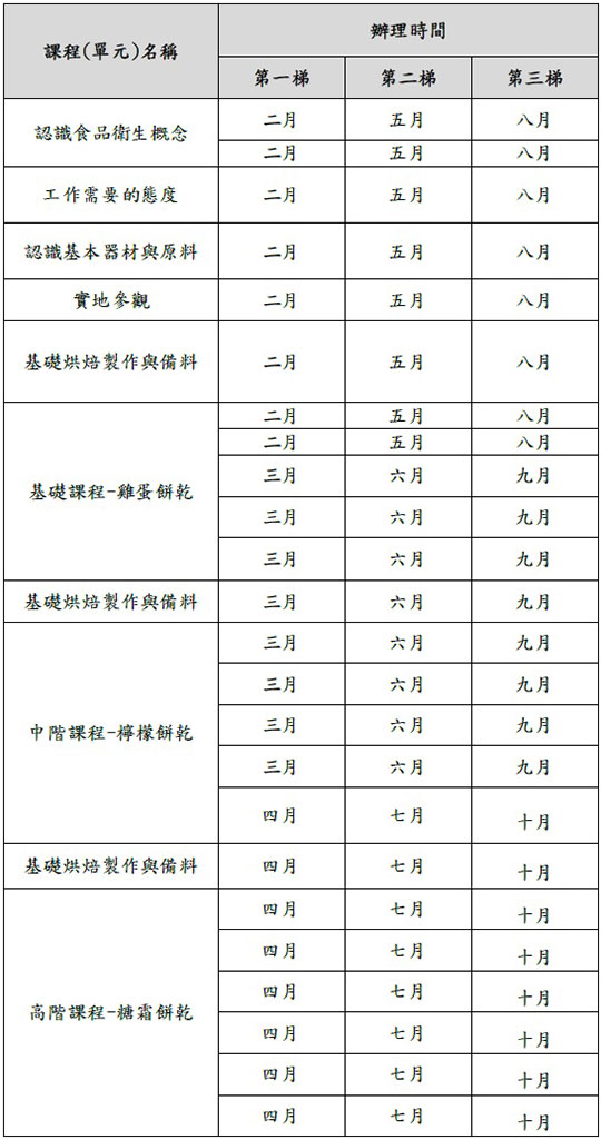 課程時間:每週上兩堂,每梯次期間三個月,共辦理三個梯次