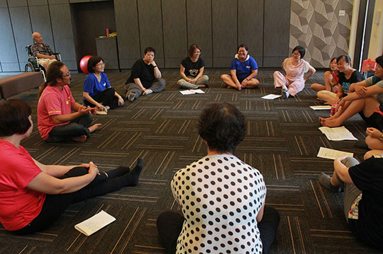 去年,新北市家庭照顧者關懷協會嘗試舉辦「照顧展」,讓家庭照顧者在社工帶領下,回顧自己的生命歷程,重新認識自我、整理自我、詮釋自我、到肯定自我;最後,除了看見自我價值之外,還展示照顧相關的物件在大眾面前,敘說自己的生命故事。在過往服務中,曾舉辦以舞療為主題的互助團體以及即興劇等,讓家庭照顧者透過不同形式的活動,與彼此的生命相遇,看見家庭照顧者許多的可能。