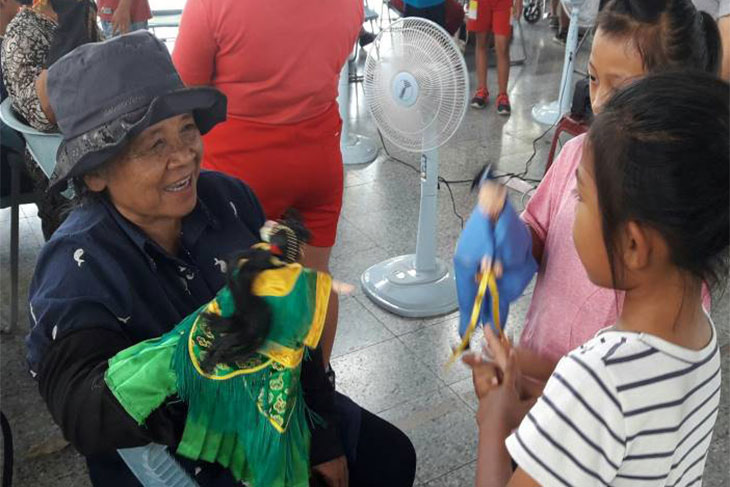 (到社區老人日托站演出排灣族的傳統神話故事,唱自己的歌、說自己的故事)