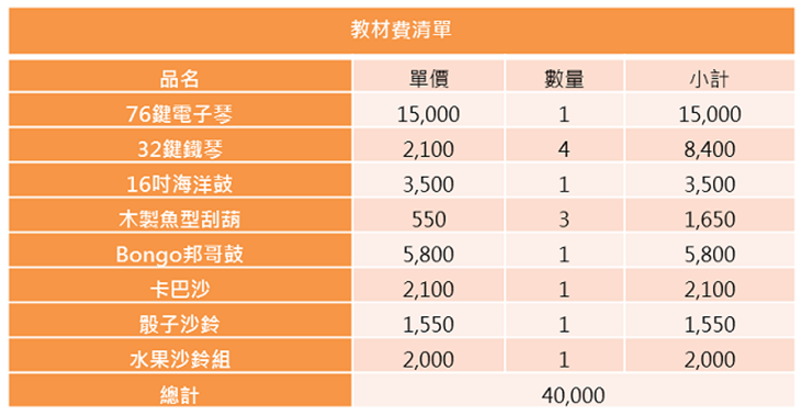 ▼音樂器材的品質落差較大,而單位希望這次購買的樂器可以使用較長久的時間,亦能讓聽損孩童擁有良好的音樂品質,所以選擇購買Yamaha品牌的樂器為主。
