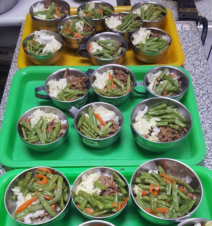 ( 學童晚餐,一人一碗,每個人都有屬於自己的碗,吃完自己洗碗環保又衛生 )