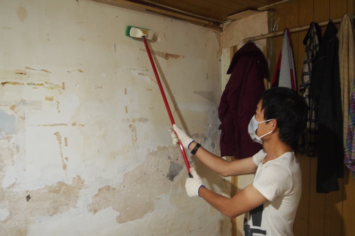 阿龍和阿梅是在萬華附近流浪的無家者,跟百味認識一段時間,加入了自助助人清潔隊計劃。我們一同幫張大哥打掃他的房間,先把不用的衣物、雜物裝進垃圾袋,再清理爬滿小蟑螂的床墊及牆壁,最後將整個地板刷洗乾淨。煥然一新的不僅僅是一個居住空間,也讓張大哥重新找回生活原本的樣貌,阿龍和阿梅也覺得能一邊工作,一邊幫助同樣是甘苦人的張大哥是很有意義的事情。