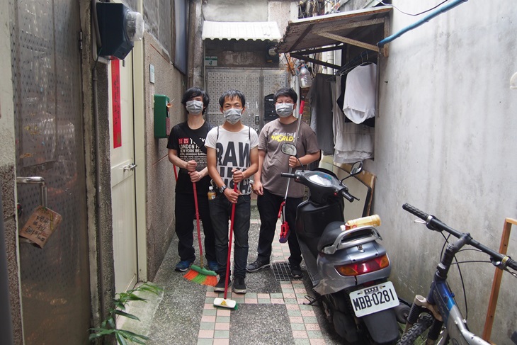 張大哥因為視力障礙,加上沒有家人照顧,社工幫他在萬華租了個小房間,每天有志工送2個便當給他,這一過便是五年。然而五年裡,生活的垃圾越積越多,張大哥卻沒有能力清理,社工便委託了自助助人清潔隊來幫忙。