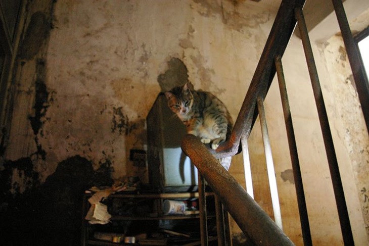 我們中午過後趕到現場,是一間老房子,燈光昏暗又沒有自來水,四處堆滿雜物和滿地排泄物,惡劣的環境下,無法想像要怎麼生存,我們盡可能先餵食和粗略評估貓咪狀況,清點數量約60隻,因為已經4-5天沒吃沒喝,部分貓咪可能掙脫籠子去外面覓食,留在現場的貓咪情緒非常驚恐躁動,且對人有強烈的防備心。