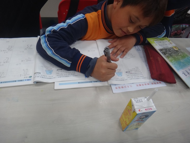 小小五坪的家,沒有放置書桌椅的地方,孩子們放學後,只能趴在地上,在燈光不足的地方寫作業,即使有不懂的地方,都等到隔天再到學校和同學互相抄寫,總是跟不上進度。晚上肚子餓了,就將中午學校吃剩下打包回來的食物加熱,和外婆一起享用。