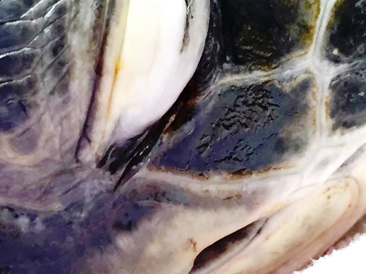 好不容易抵達醫院,身體檢查發現除了腸胃器官受損,最讓大家大吃一驚是:小叮噹的頭部竟然插著一根5公分的魚鉤!從下眼瞼到下巴,是一根已經和小叮噹共存半年以上的生鏽魚鉤,因此我們和小叮噹便展開長期抗戰!經歷了開刀、清理創傷等等,一共12天的住院療程,小叮噹終於戰勝死神,並且在3個月的照護之後,醫生正式宣布可以回到大海了!當年8月22日,小叮噹返回大海的懷抱,再次飛揚大海。