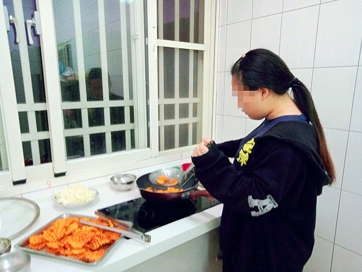 剛到慈懷園的姊妹倆,每次用餐時總是狼吞虎嚥,看到肉類更是一碗接著一碗,很怕吃不飽、餓怕了!小美說:「家裡沒錢買肉,只有青菜和罐頭、肉鬆,白飯加醬油也是一餐。」
