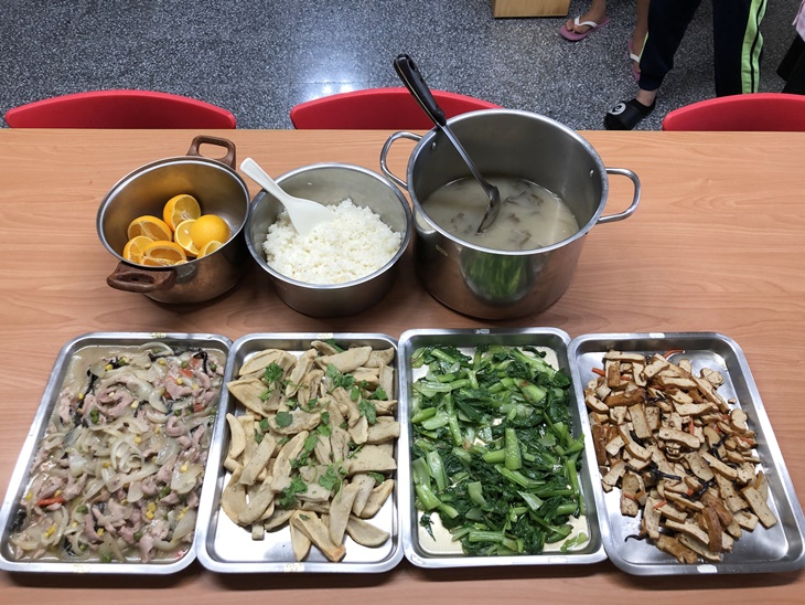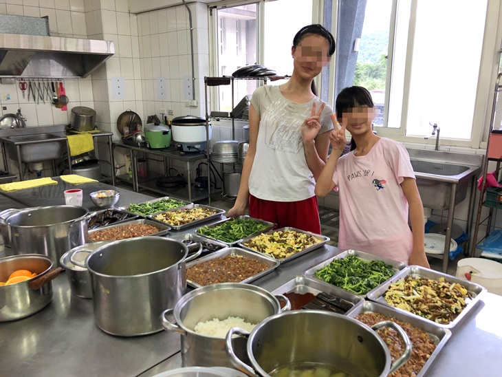 配置二名領有廚師證照的廚房阿姨來烹煮照料三餐,每日全天開伙,為30名孩子準備豐富的美味餐點,除了蔬果外、魚、肉、豆、蛋等,為孩子補充滿滿的營養,也為孩子的健康打底,增加抵抗力,以提昇良好的學習品質,穩定生活作息。