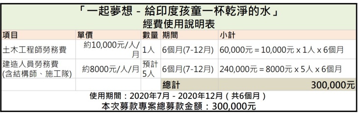 ◎專案內容:聘僱技術人員(土木工程師)進行水井建造之土壤測試、計畫準備藍圖製作、設備檢查,以及後續進度追蹤,讓印度的孩子都能輕易地獲取純淨的水資源,使孩子生活規律健康,不再為水擔憂!