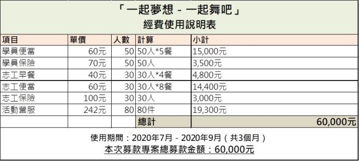 ◎合作單位:本專案由「 國立臺灣大學壹柒伍捌—兒童青少年舞蹈服務社 」與「一起夢想」共同推出。