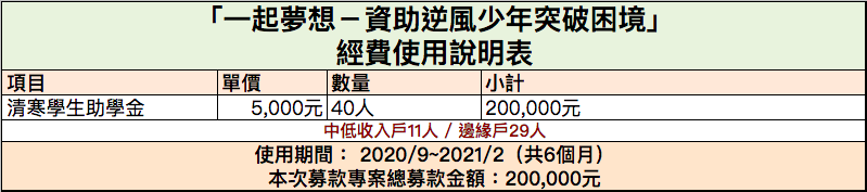 ◎專案摘要:幫助偏鄉清寒家庭少年脫離貧窮循環!