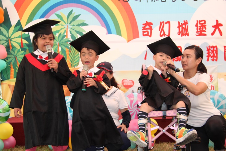 拜訪的那天,正好是午休起床的點心時間,有的孩子外觀就和正常的孩子一樣,但卻是患有情緒、行為障礙的孩子(像是自閉症、亞斯伯格),有的孩子則是動作發展遲緩或是身心障礙,需要坐輪椅,每個來到晨光的慢飛天使都有不同的狀況,但一樣的是這些孩子因為需要花費更多時間以及專業人員的照顧,無法到一般的幼稚園就學。