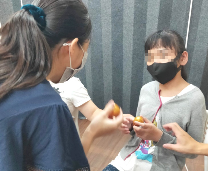 令大家驚喜的是,課程結束前約一個月的某次上課,小妍竟自發性站起來,隨著老師的律動,勇敢起來走動。阿嬤也告訴我們,小妍在家裡開始會用拍手發出聲音,來表達她有需要。小妍不斷突破她先天的限制,跨越艱難,建立信心,音樂,開啟她在表達上的另一扇窗與成長!