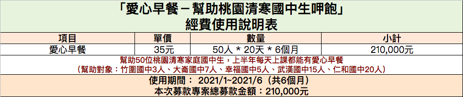 【需要您一起提供「愛心早餐」給清寒的國中生】