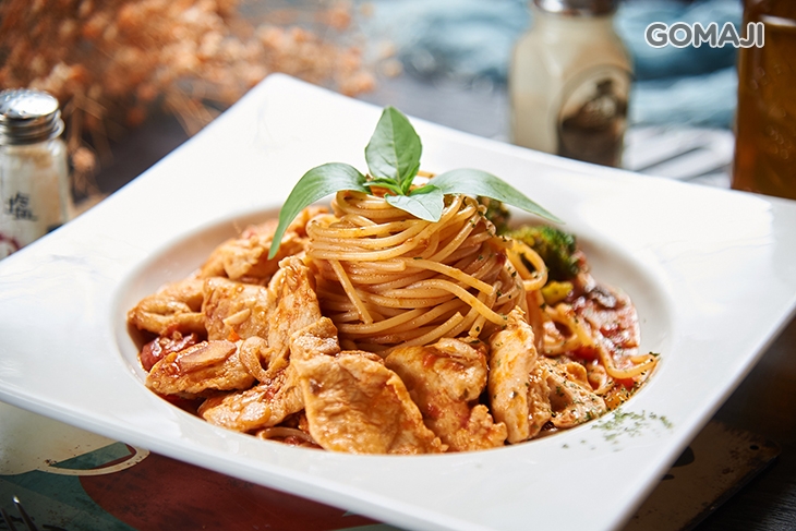 人氣不敗的番茄紅醬可說是義大利麵之經典醬底!將蕃茄的酸甜一點一滴融入了雞肉與麵條之中,給您色香味俱全的完美饗宴!