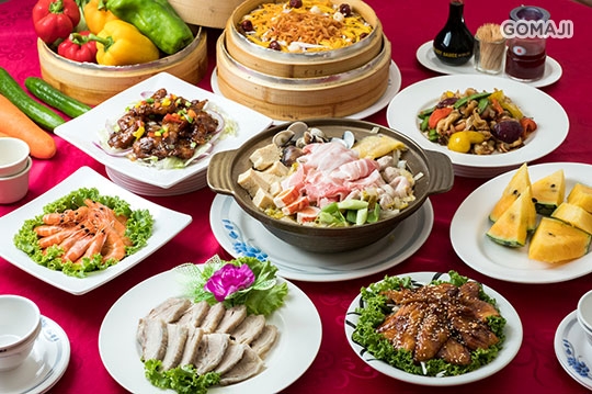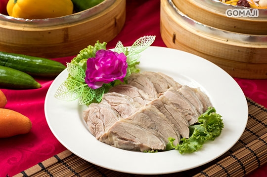 醉雞一份 + 蒜味白灼鮮蝦一份 + 蒲燒鯛魚一份 + 養生櫻花蝦米糕一份 + XO醬彩椒三鮮一份 + 極汁排骨一份 + 酸菜白肉鍋一份 + 季節水果一份