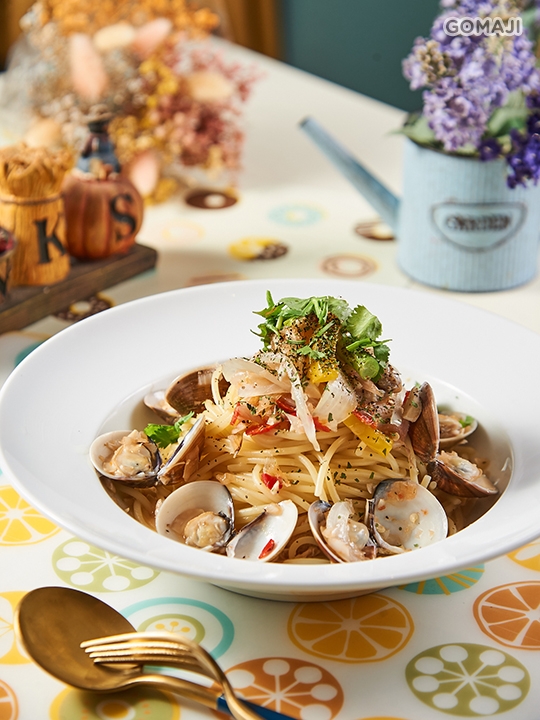 層次鮮明的泰式酸辣蛤蜊義大利麵,酸香辣勁撲鼻而來,一解煩悶的熱天氣。