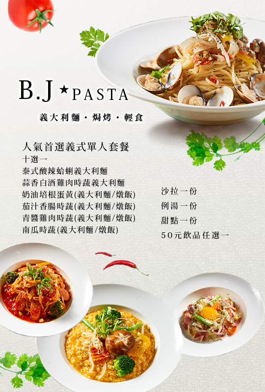 高雄市苓雅區六合路 49 巷 10 號的B.J PASTA,專營鮮美可口的義大利麵、焗烤和輕食,環境清幽,讓人一進門便捨不得離開。