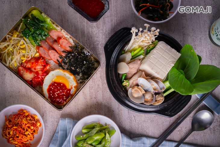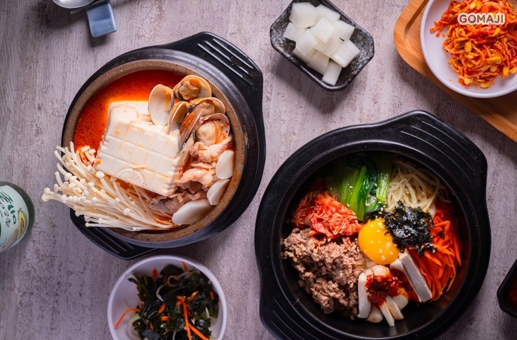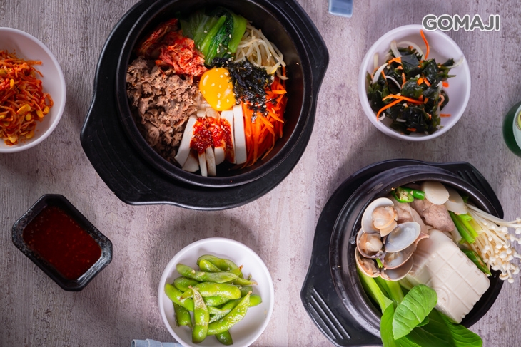 石鍋拌飯也是韓式料理經典中的經典!將米飯放入熱騰騰的石鍋中,接著放上靈魂主角 - 烤梅花豬肉及各式各樣韓式小菜,最後再放上一顆新鮮蛋黃,美味大功告成!將金黃散發耀眼光芒的蛋黃, 輕輕的用湯勺拌攪品嚐,讓鹹香美味多了一分柔滑口感,讓人一口接著一口,不知不覺就秒殺完!
