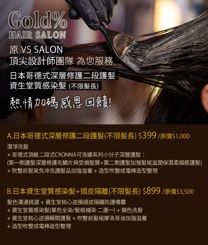 A.日本哥德式深層修護二段護髮(不限髮長)