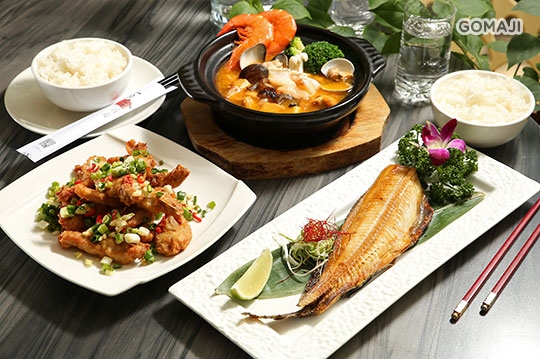 北海道花魚一夜干一份 + 腰果雞丁/椒鹽排骨/糖醋魚柳/客家小炒/泡菜松阪豬/香根牛肉絲 任選一 + 宮保皮蛋豆腐/蟹黃豆腐煲/古早味肉末豆腐/百合綠蘆筍/樹子高麗菜/青炒空心菜 任選一 + 白飯二碗