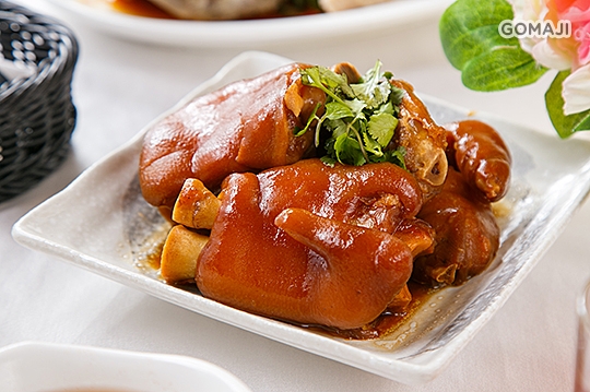 鹹香Q彈家傳豬腳呈現迷人深沉色澤,輕輕咬下,濃郁滑口滋味四散於唇齒間,感受入味醬底風味將甜美肉香點綴得無比甘醇芬芳!