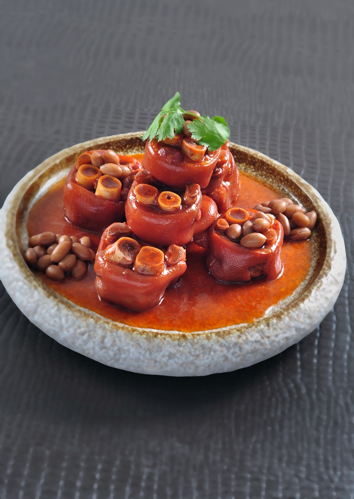油亮亮的花生圈豬腳,一端上桌就讓人胃口全開,亮褐色的外皮有著濕潤口感,肉質彈牙軟嫩帶著鹹香,滑而不膩,搭配花生圈一同入口,鮮香味美讓你一吃就愛上!