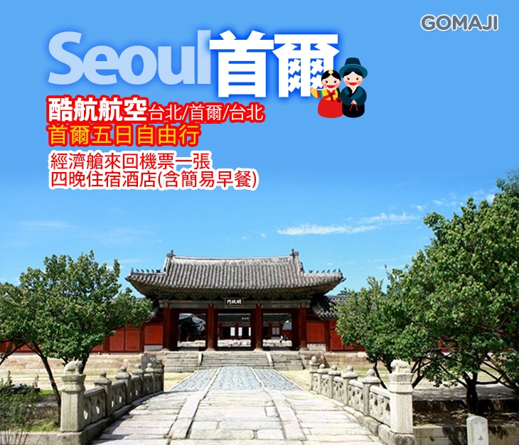 ★ 酷航航空:台北/首爾/台北-經濟艙來回機票一張