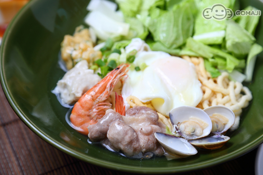 老闆用料大方不手軟!鍋燒意麵當中有蝦子、蛤蜊、肉片、青菜、雞蛋等多種配料,吃下去的每一口都是豐富的好滋味!