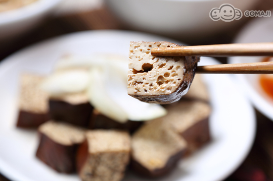 特製的滷豆乾閃著油亮的光澤,深咖啡色的美麗顏色就是滷的入味透徹的最佳證明!感受鹹香的滋味在嘴巴爆發,直呼超幸福!