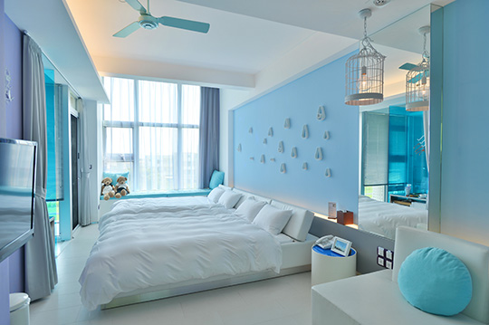 每一間房型,都有不同主題,以不同的色調搭配完美打造截然不同的情境空間,清新的、熱情的、溫暖的、奇幻的,豐富你的美麗夜晚!