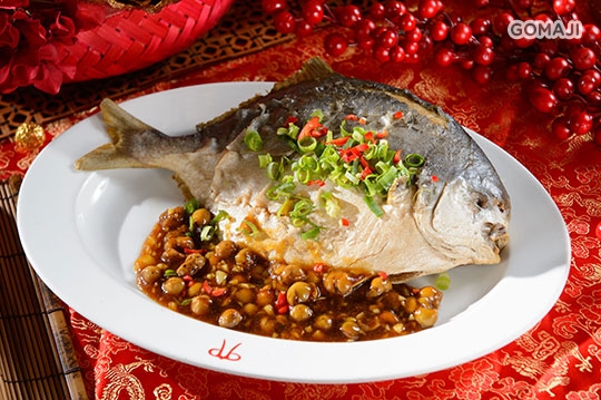 主廚選用皮 Q 厚且充滿膠原蛋白、肉質細膩的金鯧魚,佐以具有特殊甘味的樹子一起蒸煮,鹹鮮的樹子味,完美提出魚肉的鮮甜美。