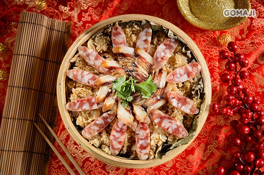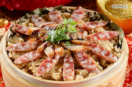 主廚先以濃醇黑麻油拌炒紅蔥頭、香菇、肉絲與蒸熟後的糯米飯,接著將高粱醃製過的臘肉與香腸一起蒸煮,將糯米的甜與臘味的鹹香融合得更緊密,每一口都能吃到道地的好滋味。