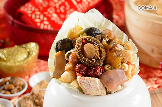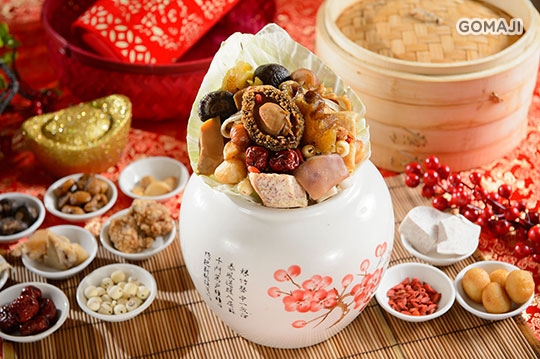 2016 評比得獎年菜,以整顆生鮑入甕,再加上珍鮮干貝與海參,以及完美比例的脆筍與芋頭等食材,一起細火慢燉三小時,讓食材充分融合與入味。烹煮時,主廚親側隨時掌握火侯,不只香濃味醇,更維持湯清不濁,呈現完美的琥珀色。