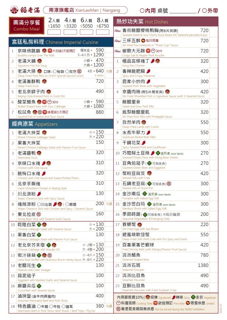 以「餡滿心誠」為服務宗旨,將每一位到來的顧客都當作賓上客服務。真材實料、絕不偷懶的中式宴席,加上服務人員機敏且親切的熱忱對應,讓您來到【餡老滿】,就好似來到古代宮廷餐與一場盛會般,不禁沉醉在那坊間感受不到的氛圍之中!