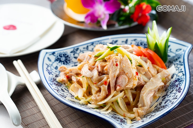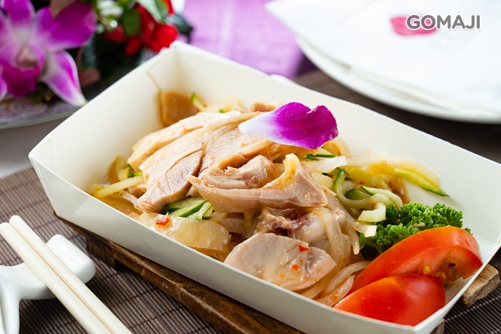 皮Q肉嫩的彩邑水晶雞,噴香上桌,雞皮油潤光滑的模樣,相當可口迷人!搭配軟嫩、鹹甜又JUICY的肉質與清爽涮嘴的涼拌鮮蔬,擁有水晶雞的美稱,果真名不虛傳!