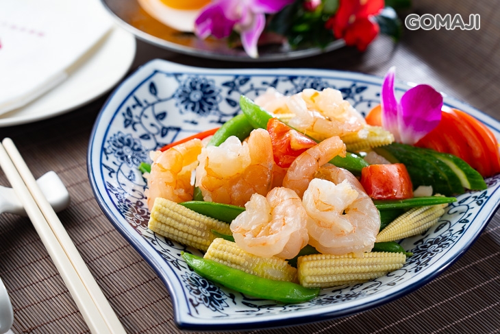 綠油油的草地,有著橘橙美麗的花朵點綴,給您視覺上一大的享受!以各式新鮮蔬菜,有玉米筍、番茄、小黃瓜等,搭配朵朵鮮甜可口的大蝦仁,簡單調味拌炒,蝦肉汁甜肉彈,與時蔬相襯享用,層次更豐富,口感更佳!