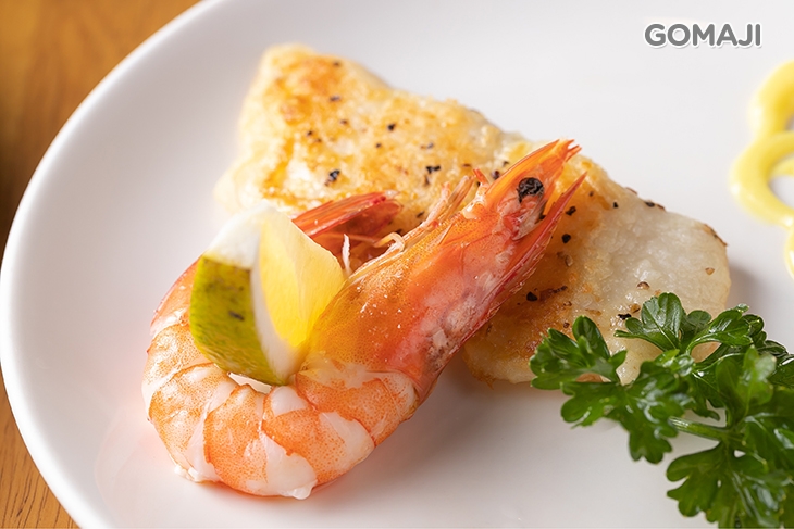 嚴選新鮮時令鮮魚與大蝦,平鋪於料理台上,倒入油文火香煎一番!煎得表皮金黃香脆的鮮魚,肉質細緻、滋味甘甜!鮮蝦肉紮實、爽脆!不用過多佐料調味,單吃讓您感受來自大海最自然、最原始的風味 ~