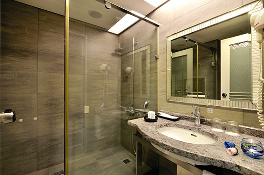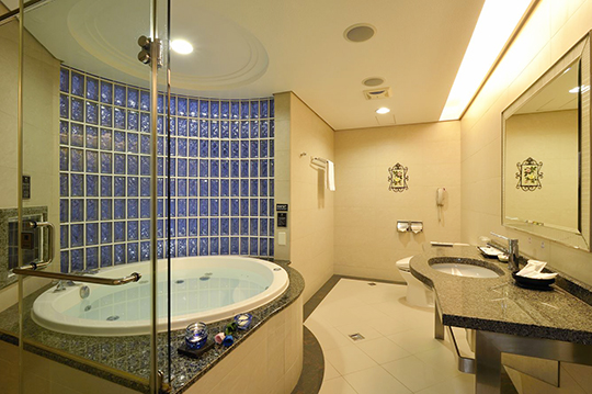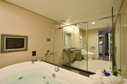 以柔和的大地色基調,配合沉穩內斂的家飾品味,展現雅緻與尊貴。雙人按摩浴缸,洗去僕僕風塵,溫馨雅逸的氛圍,讓您體驗遠離塵囂的悠閒自得。