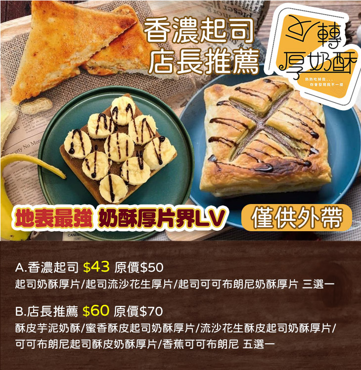 〈起司奶酥厚片/起司流沙花生厚片/起司可可布朗尼奶酥厚片 三選一〉