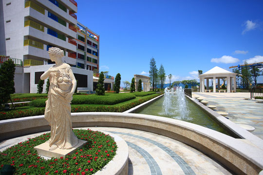 上千坪的華麗花園廣場,有噴泉、女神雕塑及各式園藝造景,仿若徜徉在夢境中的秘密花園。