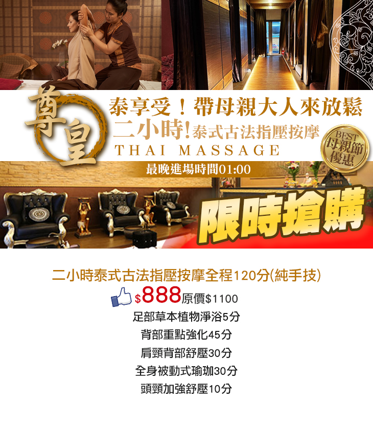 【尊皇泰式按摩養生會館】感謝麻吉們熱烈搶購,已全數賣光光。