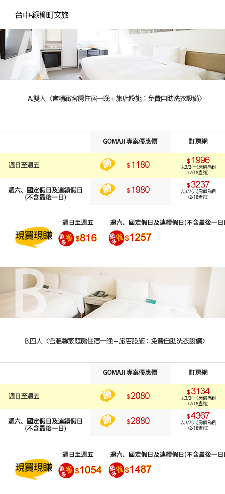 ※房型每間配置與設計格局不盡相同,依現場房況安排為主。