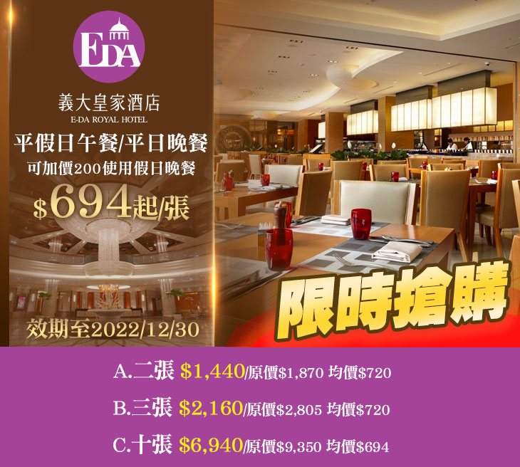 【高雄義大皇家酒店-星亞自助餐】感謝麻吉們熱烈搶購,已全數賣光光。