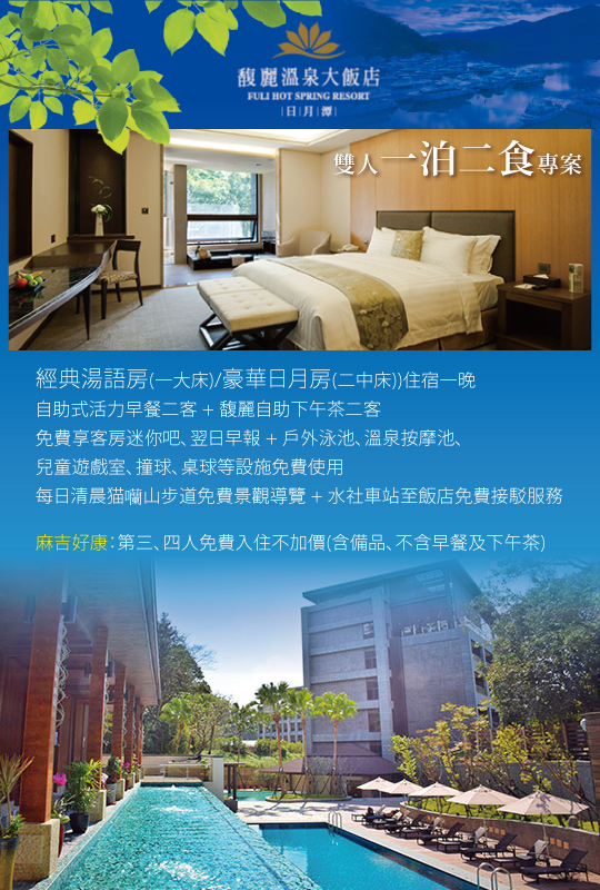 【日月潭-馥麗溫泉大飯店】感謝麻吉們熱烈搶購,已全數賣光光。